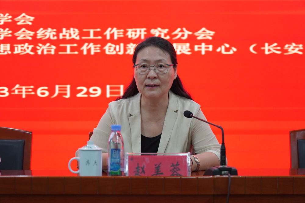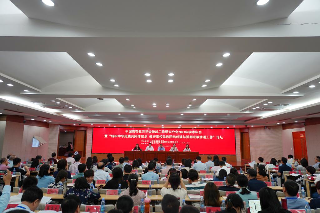 为深入学习贯彻党的二十大精神,全面落实习近平总书记关于做好新时代党的统一战线工作的重要思想和中央统战工作会议精神,进一步铸牢中华民族共同体意识,推动高校民族团结进步教育事业发展,维护校园和谐稳定,6月28日至30日,由中国高等教育学会统战工作研究分会、教育部高校思想政治工作创新发展中心(长安大学)联合主办、内蒙古大学承办的“中国高等教育学会统战工作研究分会2023年学术年会暨‘铸牢中华民族共同体意识做好高校民族团结创建与抵御宗教渗透工作’论坛”顺利召开。中国高等教育学会统战工作研究分会副理事长、昌吉学院党委书记罗旭,内蒙古大学党委委员、副校长额尔很巴雅尔,分会秘书长、我校教育部高校思想政治工作创新发展中心办公室主任郭云珠,兰州大学党委统战部常务副部长药丽雯出席会议开幕式。开幕式由分会副理事长、南开大学党委副书记、纪委书记赵美蓉主持。来自全国124所高校的近190名统战干部参加会议。
