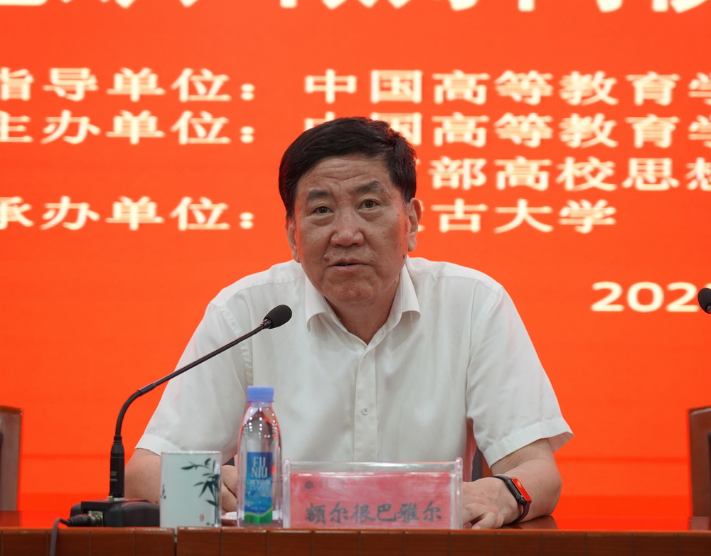 开幕式上,额尔很巴雅尔代表内蒙古大学党委致欢迎辞。他详细介绍了内蒙古大学的建设发展情况及取得的成绩,指出内蒙古大学66年的耕耘与收获,凝结着几代内大人的心血与智慧,同时承载着各级领导和全国各兄弟高校长久以来的关心和帮助。希望能以此次会议为契机,进一步加强与各兄弟高校的交流学习,铸牢中华民族共同体意识,不忘初心、守望相助,一起为实现中华民族伟大复兴的共同目标而努力奋斗。