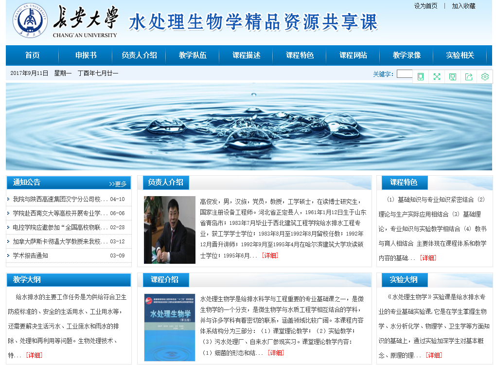《水处理生物学》课程网站http://sclswx.chd.edu.cn/