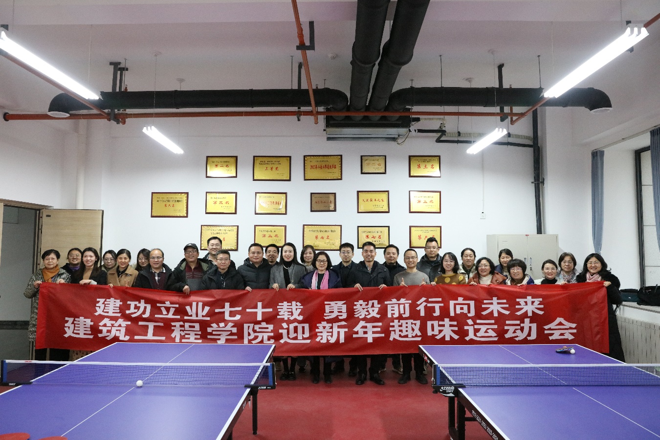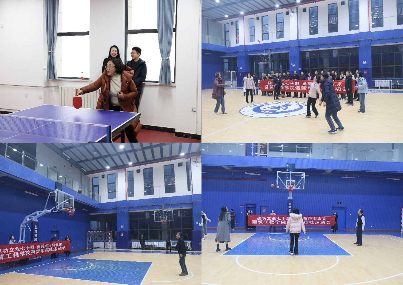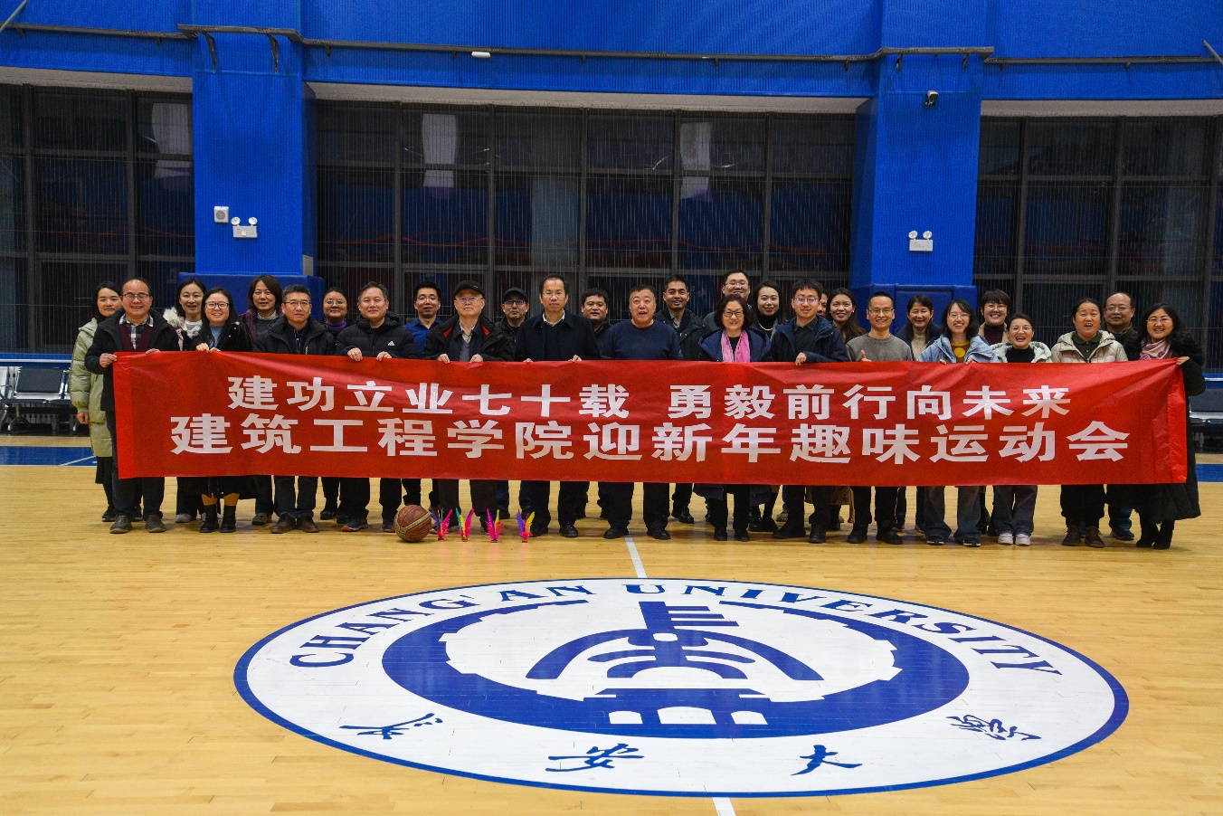 在庆祝建筑工程专业办学70年之际,为丰富教职工精神文化生活,增强学院广大教职工的向心力和凝聚力,增进联络教职工与校友之间的感情,12月29日下午,建筑工程学院在渭水校区乾健综合馆和致远大厦学院工会活动室举办了主题为“建功立业七十载、勇毅前行向未来”迎新年趣味运动会。学院党委书记刘明和、党委副书记副院长闫秀萍、副院长胡志平出席并参加,50余名教职工和校友参加了此次活动。