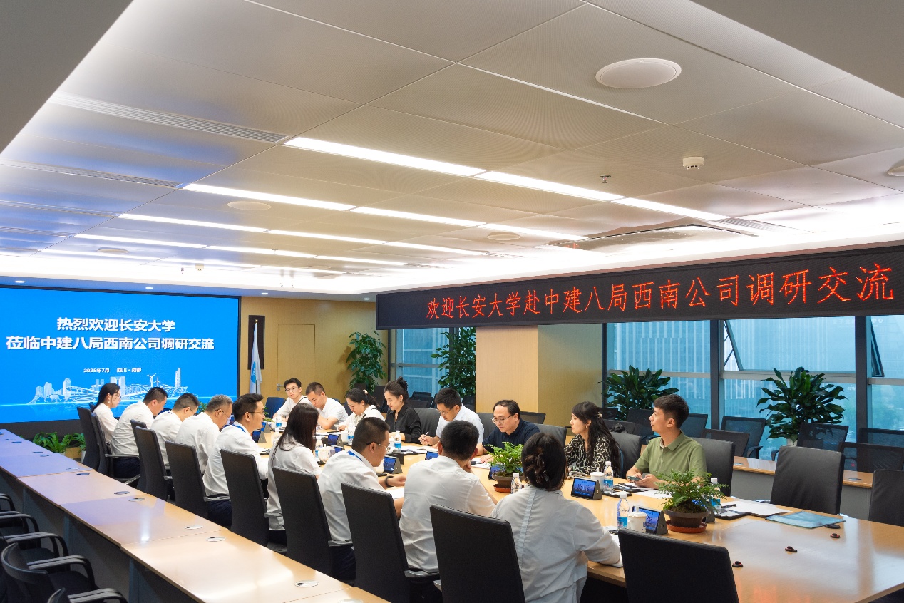 在中建七局西南公司,吴涛、贾侃分别与公司助理总经理、人力资源部(干部人事部)总经理赵艳玲、副总工程师南学飞签署合作协议,共建“长安大学就业实习基地”。赵艳玲提出精准人才输送、深化培养合作、互通科研交流三点期望;南学飞聚焦行业痛点,呼吁校企共同破解“人才转化效率低、专业适配性不足、产学研衔接薄弱”等难题。校友代表韩秋石、赖凌莹分享成长经验,为母校教学优化改革建言献策。