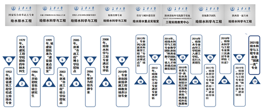 长安大学市政工程系,始建于1953年,并于同年开始本科招生,1984年起招收硕士研究生,1999年获批建设部重点实验室。2003年、2005年分别获批“市政工程”硕士、博士学位授权点,2008年通过全国高等教育给排水科学与工程专业评估,成为国内首批通过评估的高校,并于2013年、2018年和2023年三次顺利通过复评。2010年获批“国家卓越工程师计划”,2012年正式开设“卓越工程师班”。2021年,本专业入选教育部“双万计划”国家级一流本科专业建设点。
