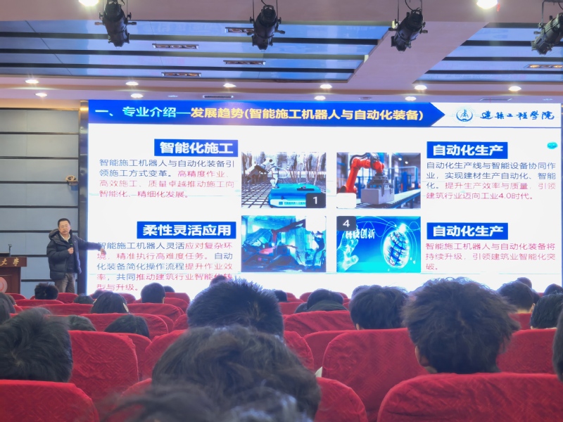 副院长田威从学院概况、专业内涵、发展现状与趋势、学院人才培养特色等方面向大一学生介绍了学院本科专业以及专业发展的新趋势、新方向。他鼓励同学们增强对行业未来的信心,逐步建立起专业学习的兴趣,希望同学们主动拓宽视野,注重跨学科能力培养,将个人成长发展与国家发展战略相结合,努力成长为支撑行业发展的复合型创新人才。