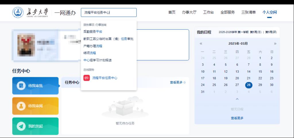 第三步:信息门户-个人空间-搜索“流程平台任务中心”-点击进入。