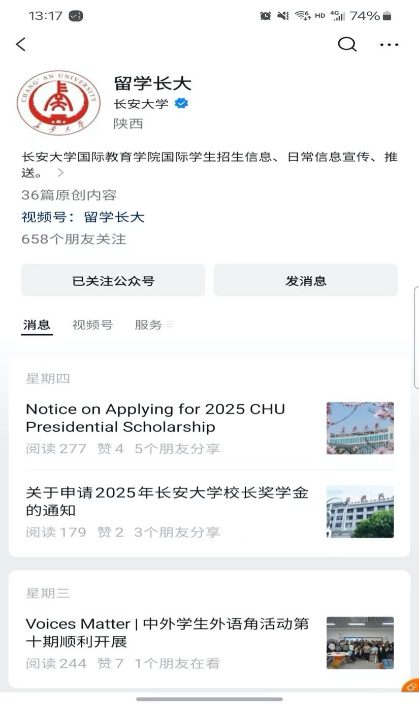 来源:长安大学官方微信公众号、国际学生工作办公室、招生办公室