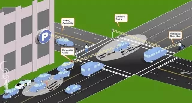 V2V通信的应用场景 V2V通信有大量的应用场景,主要涉及提高驾驶安全性或者交通效率,并向司机提供信息或娱乐。 V2V应用实例 1、交通安全性 进入交叉路口或离开高速公路的警告; 危险位置警告:发现障碍物,报告事故; 突然停止警告:向前碰撞警告,碰撞前感测或警告; 变道警告/保持警告/协助; 特权救护车,消防车和警车等等。
