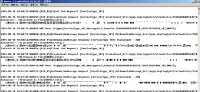 图9 Telematics台架测试实施 图10 Telematics实车道路测试实施 3.4测试实施 测试实施阶段主要工作如下:执行测试用例、详细记录测试结果及bug列表、截取log文件、借助测试工具及log文件对问题原因分析及定位、缺陷跟踪。 测试结果分析与评价工作中的重点是问题定位,明确的问题定位有利于高效的问题解决。因为Telematics功能的实现依赖于数据流转多个环节,测试问题的原因究竟归于哪个环节的判定尤为重要,这也是Telematics测试的难点,故在测试过程中对log的有效准确分析非常必要。 问题Log分析举例: 1)问题描述:**餐厅预订失败。 2)NGTP协议Log文件: