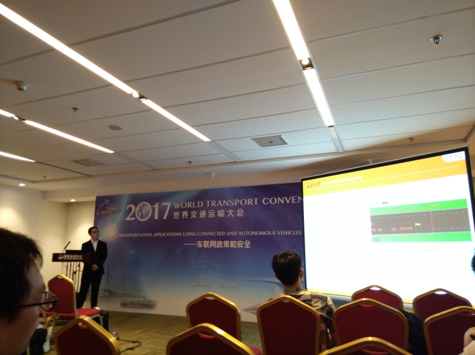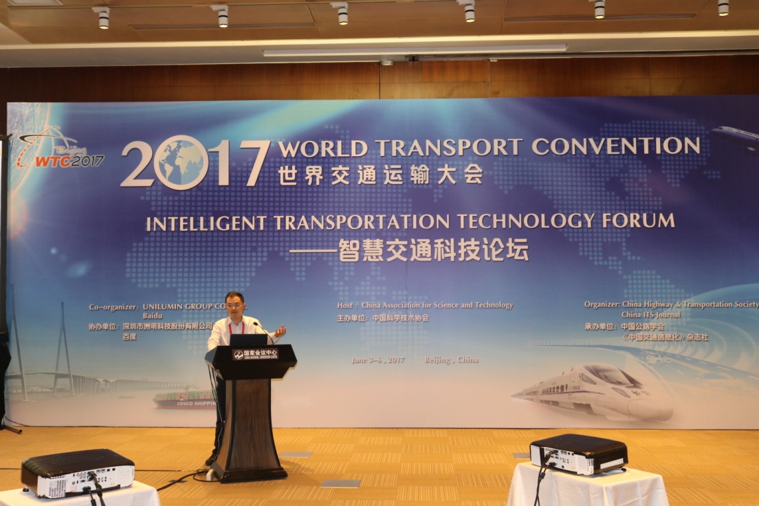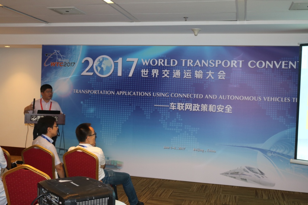 2017年6月5日和6日,长安大学副校长、车联网与智能汽车测试技术创新联盟理事长赵祥模应邀出席了在北京国家会议中心举办的“2017世界交通运输大会(2017 WORLD TRANSPORT CONVENTION)”。徐志刚副教授、惠飞副教授以及部分研究骨干、博士研究生一起出席并作了相关的学术报告,与业界同仁对车联网研究的现状及新方法进行了热烈的探讨。