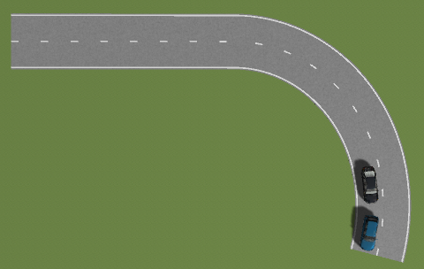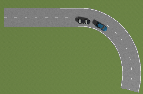 测试自动驾驶汽车在直曲线组合道路(匝道)跟车行驶时能否实现转弯减速并且保持跟随前车行驶状态变化及时调整自身的速度与方向,避免发生碰撞、车辆发生侧翻、撞击路旁设施等危险情况,以确保自动驾驶汽车在直曲线组合道路行驶时的自车的安全。