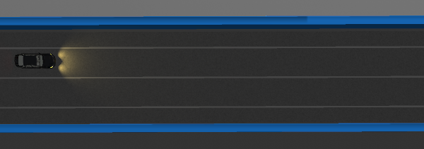 在模拟高速公路测试环境中,测试道路为至少包含两条车道的隧道道路,隧道内道路中间车道线为白色实线,测试车辆沿车道线行驶。限速标志在隧道内路侧放置,测试车辆应及时识别限速标志,及时减速。