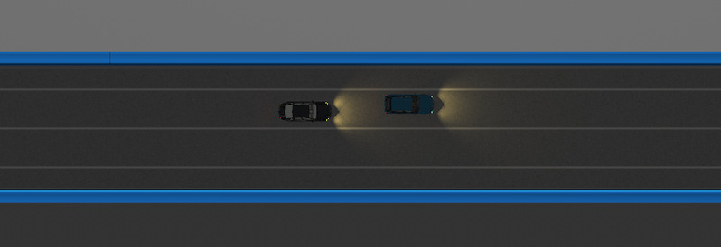 在模拟高速公路测试环境中,测试道路为至少包含两条车道的隧道道路(含隧道入口及上游道路、隧道出口及下游道路),隧道内道路中间车道线为白色实线,测试车辆沿车道线在参考车后方行驶。参考车紧急制动,测试车辆应及时紧急制动,避免与参考车发生碰撞。