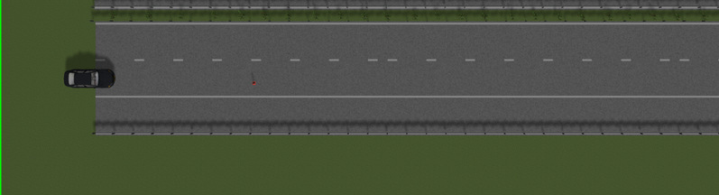 测试道路为双向4车道,中间车道线为白色虚线,测试车辆沿车道线行驶。模拟施工区位于测试车道内测试车前方,接近模拟施工区,预期测试车检测到模拟施工区后,制动停车或减速强制变道进入相邻车道,避让施工区。