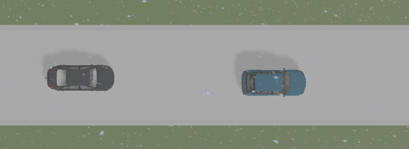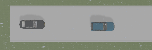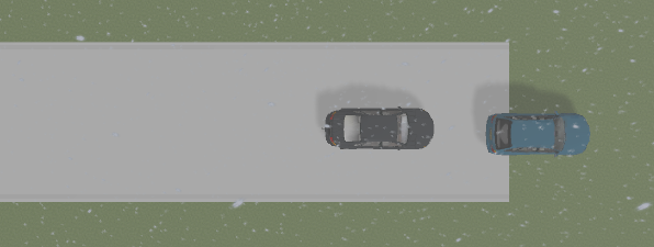 测试自动驾驶汽车能否在模拟降雪环境内识别前方行驶车辆,并保持跟车运行,以确保自动驾驶汽车在降雪环境中行驶状态下的自车安全。