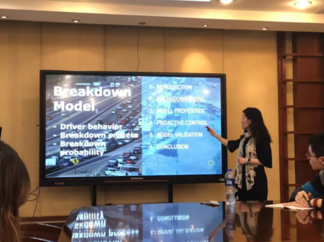 3月4日,美国威斯康星大学Soyoung Ahn副教授,周扬博士,一行应邀来我基地进行参观交流。 4日上午,Soyoung Ahn副教授一行参观了我基地渭水校区车联网与智能汽车试验场,就“智能网联车队列跟驰技术”、“车联网下的协同换道技术”、“动态速度限制与交通流主动管理技术”等,与基地骨干青年教师、博士生和硕士生进行了深入的交流与探讨。 下午,Soyoung Ahn副教授在基地会议室为参会师生做了题为《A stochastic modeling of traffic breakdown for freeway merge bottlenecks》的专题报告。本报告展示Ahn教授的最新研究成果,一种基于高速公路合流瓶颈场景下的微观驾驶行为的新型交通流崩溃的概率模型。该研究通过对Newell’s 跟驰模型的改进,进而描述从自由流状态到拥堵状态下的渐变过程。同时基于该模型的特性,提出了一种低渗透率的智能网联汽车主动响应交通控制方法。专题报告后,Ahn教授与参会师生就“交通流主动相应控制机理”、“该机理在交通事件环境中的实际运用”等课题,进行了热烈讨论。该报告内容受到了与会师生的一致好评,赢得了热烈的掌声。基地青年教师与研究生30余人参加了此次学术研讨会。