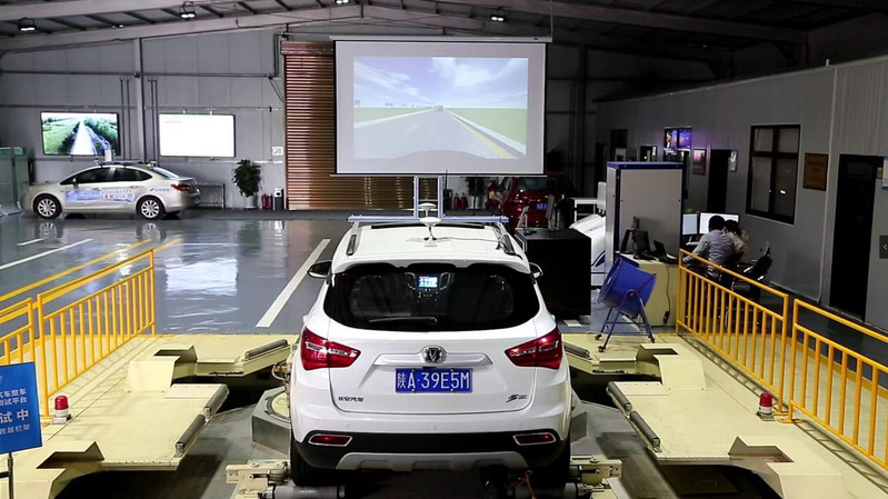 项目组研发的世界首台虚实结合的智能网联车路系统加速测试平台