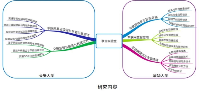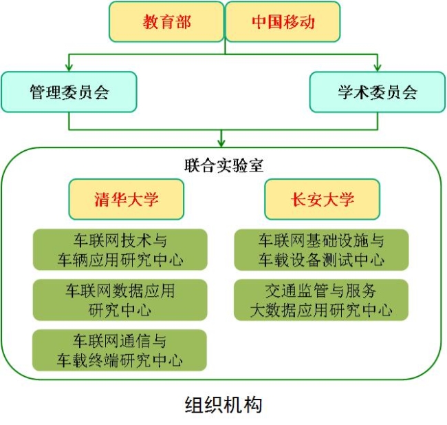 “车联网教育部-中国移动联合实验室”是由教育部和中国移动通信集团公司在“十三五”战略合作协议指导下共同谋划成立的,由中国移动、清华大学和长安大学三方合作建设,建设期为3年,三方共计将投入4000万元,围绕车联网相关领域面临的重大科技问题,结合国家和中国移动对智能网联汽车发展需求,重点对“车联网与智能汽车关键技术”、“车联网行业大数据应用”、“车联网基础设施与车载设备测试”等关键方向开展研究。实验室将建成一个能持续开展车联网及智能网联汽车领域的研发创新、项目孵化、应用示范的具有国际水准的能力平台,产出一批标志性成果、创造一批具有世界一流水平的创新应用范例,力争成为国际一流的科技创新、学术交流以及高层次创新型人才培养、校企协同创新的示范基地,引领我国车联网与智能网联汽车技术发展。
