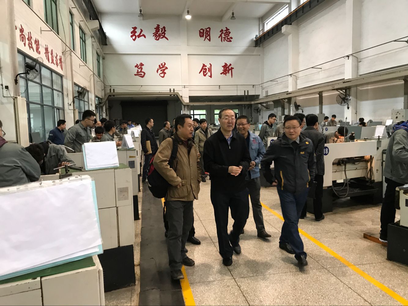 2017年10月11日上午,陈峰校长在实管处、教务处领导陪同下,来现代工程训练中心检查本科教学评估的准备工作。