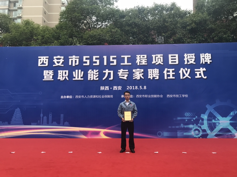 2018年5月8日,西安市人力资源和社会保障局举办“5515工程”项目授牌暨职业能力专家聘任仪式,现场为西安市5家技能大师工作室,5家高技能人才培训基地,10名首席技师及50名职业能力专家授牌发证。我校现代工程训练中心负责人出席聘任仪式。