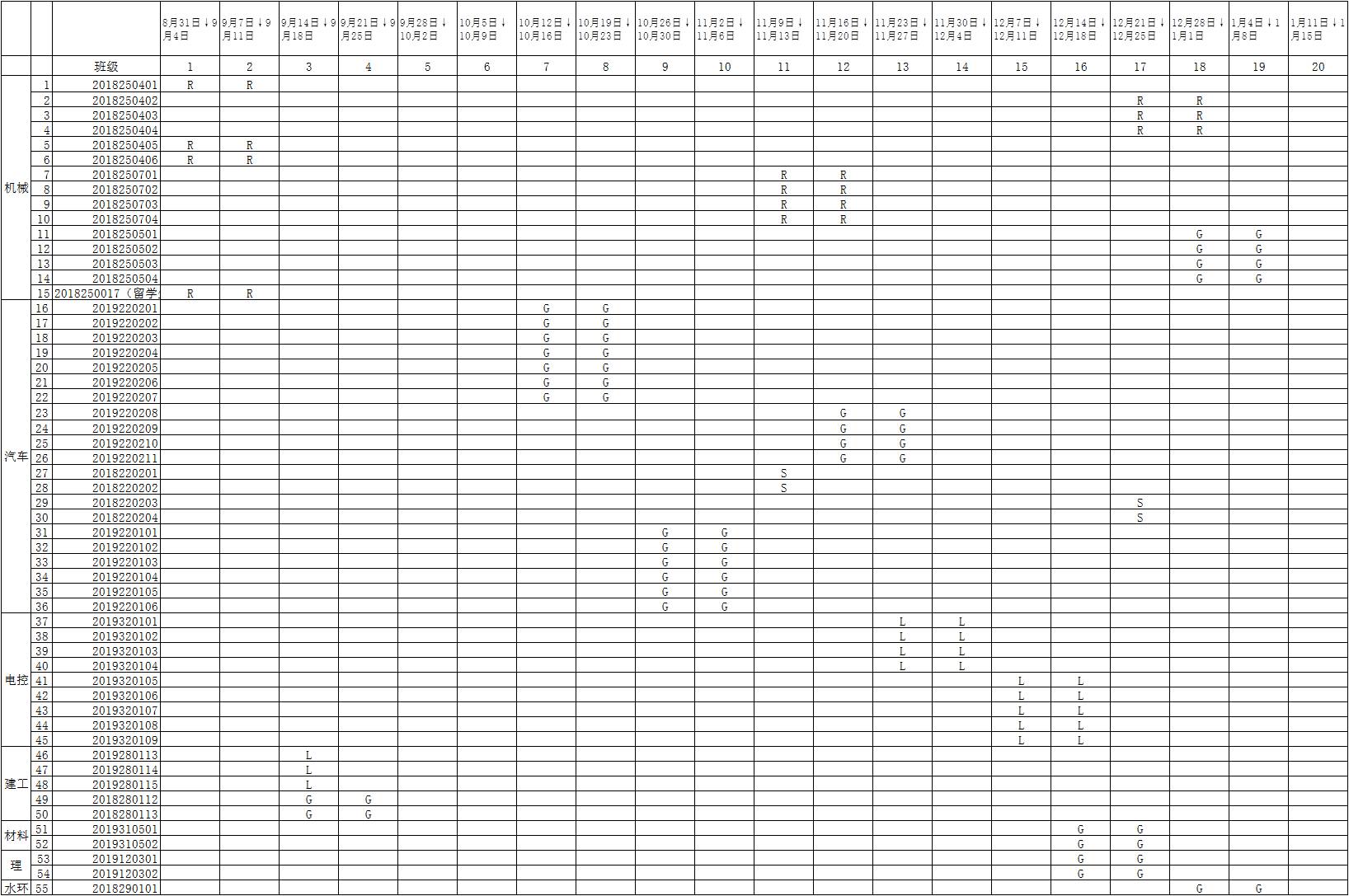 现代工程训练中心2020-2021年度第1学期教学进程表