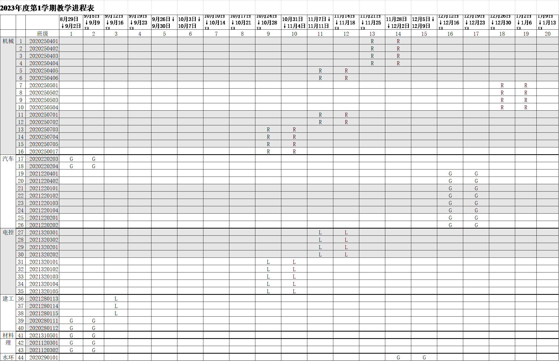 现代工程训练中心2022-2023年度第1学期教学进程表