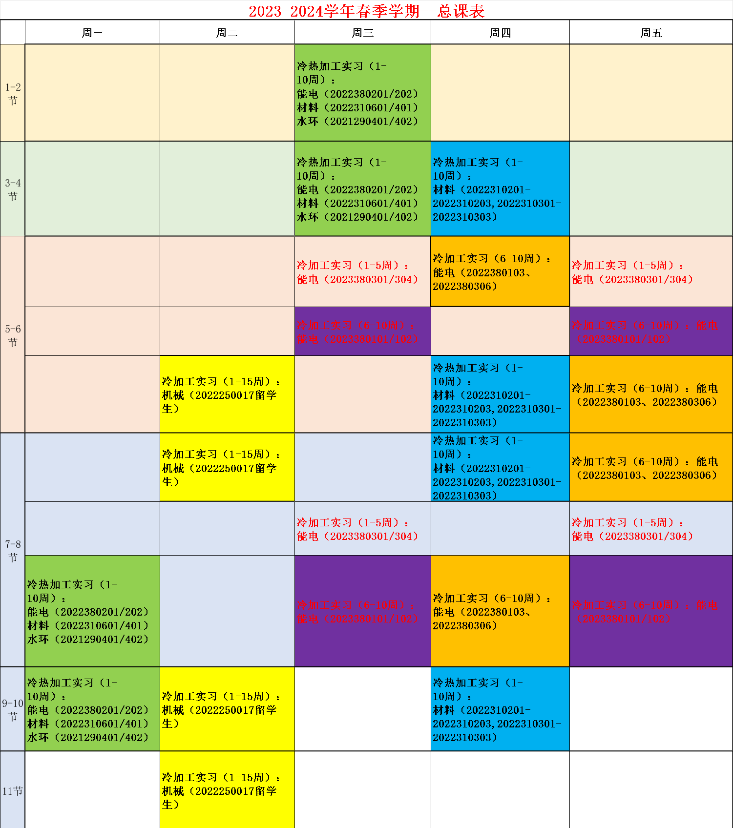 现代工程训练中心2023-2024年度第2学期教学进程表