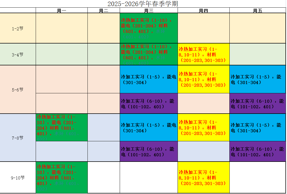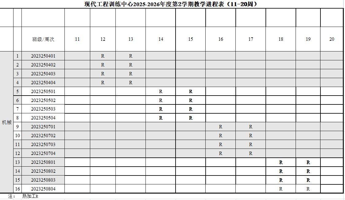 现代工程训练中心2025-2026学年第2学期教学进程表